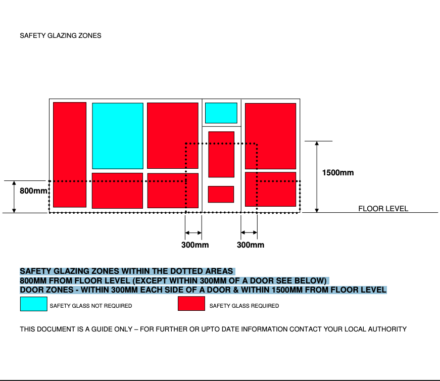 Door zones - within 300mm each side of a door & within 1500mm from floor level